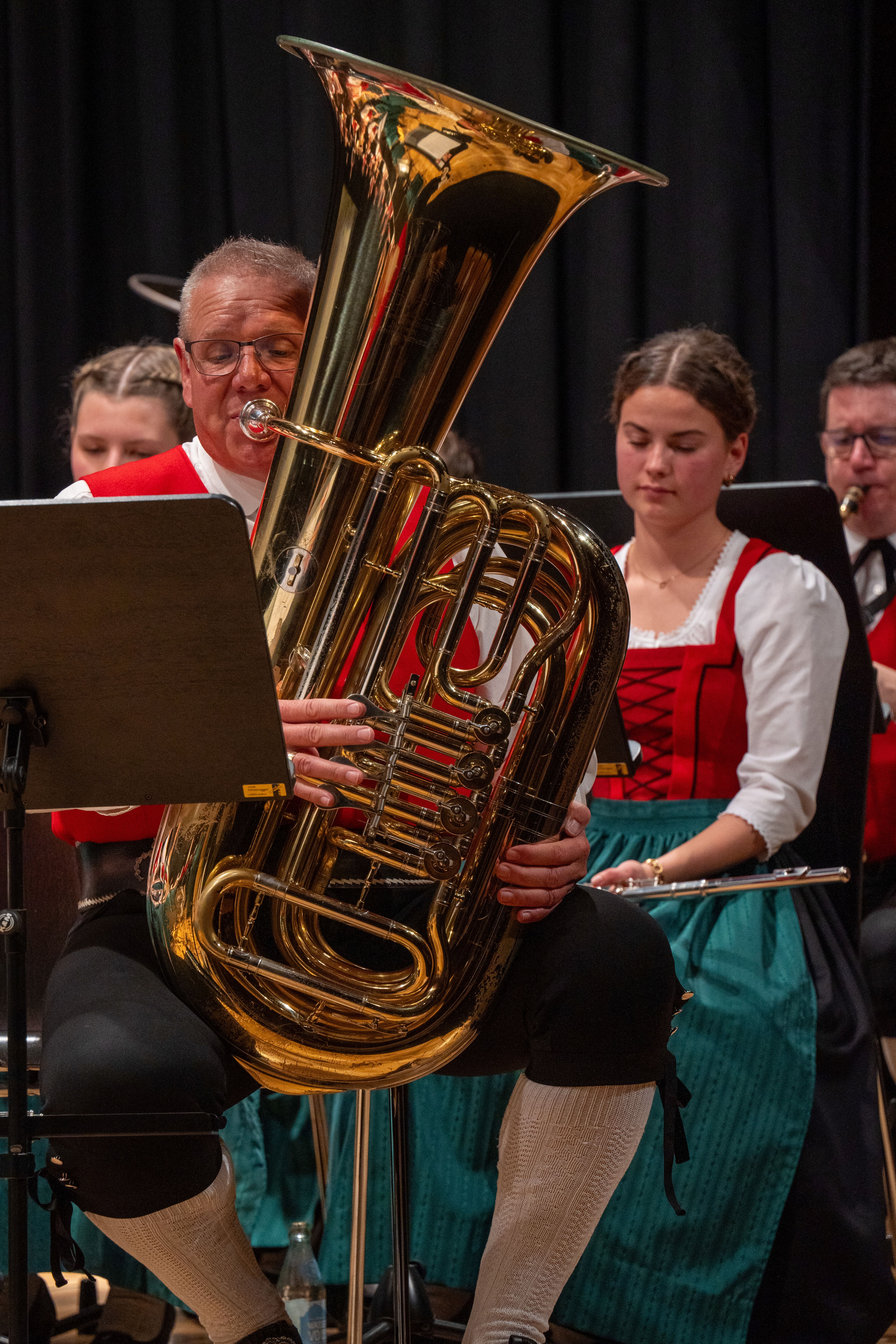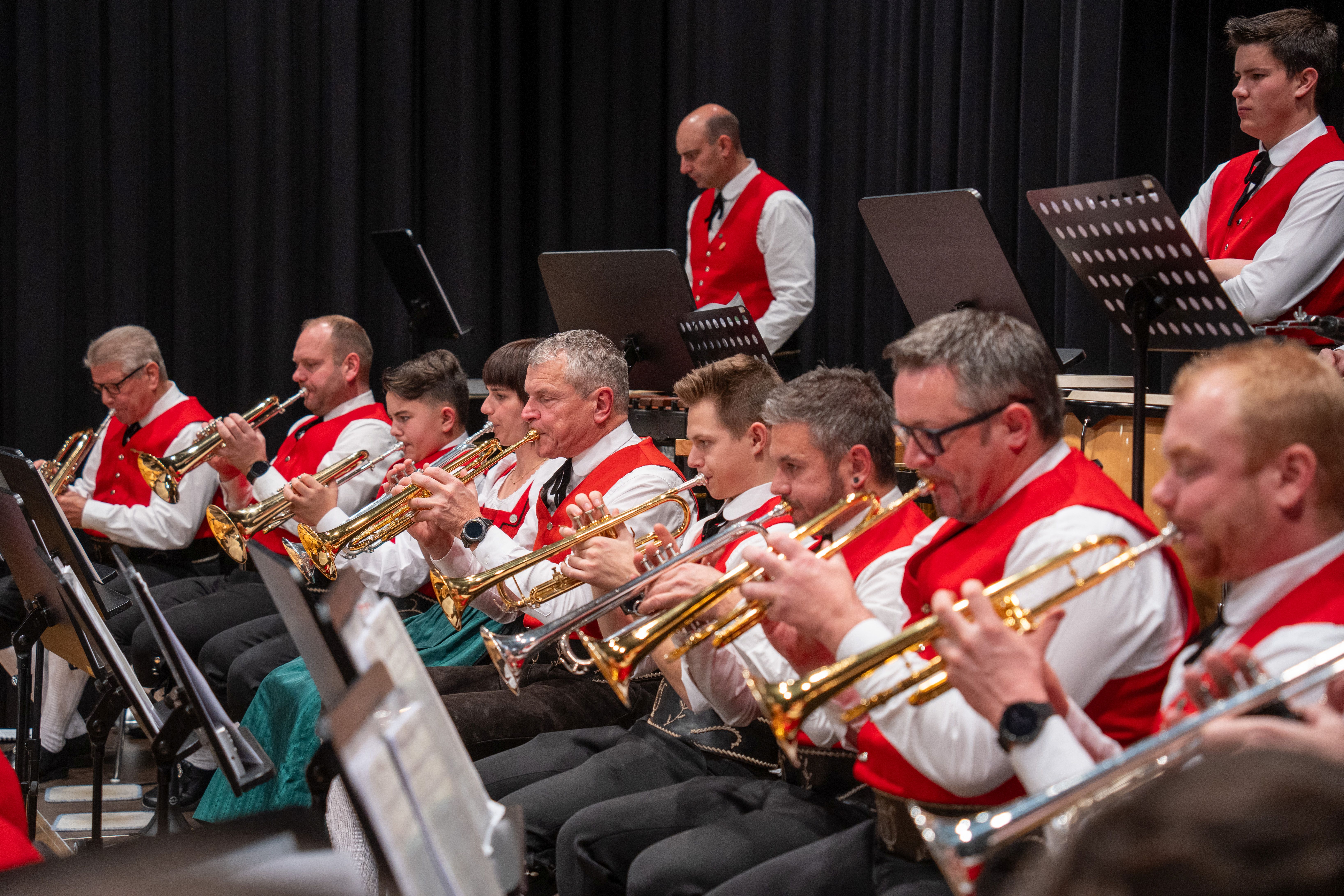 Nach der gekonnten Eröffnung durch den musikalischen Nachwuchs nahmen die Musikantinnen und Musikanten vom Musikverein auf der Bühne vom Dorfsaal Platz. Kapellmeister Heinz Lins hatte mit dem Musikverein wieder ein anspruchsvolles und abwechslungsreiches Konzertprogramm einstudiert.