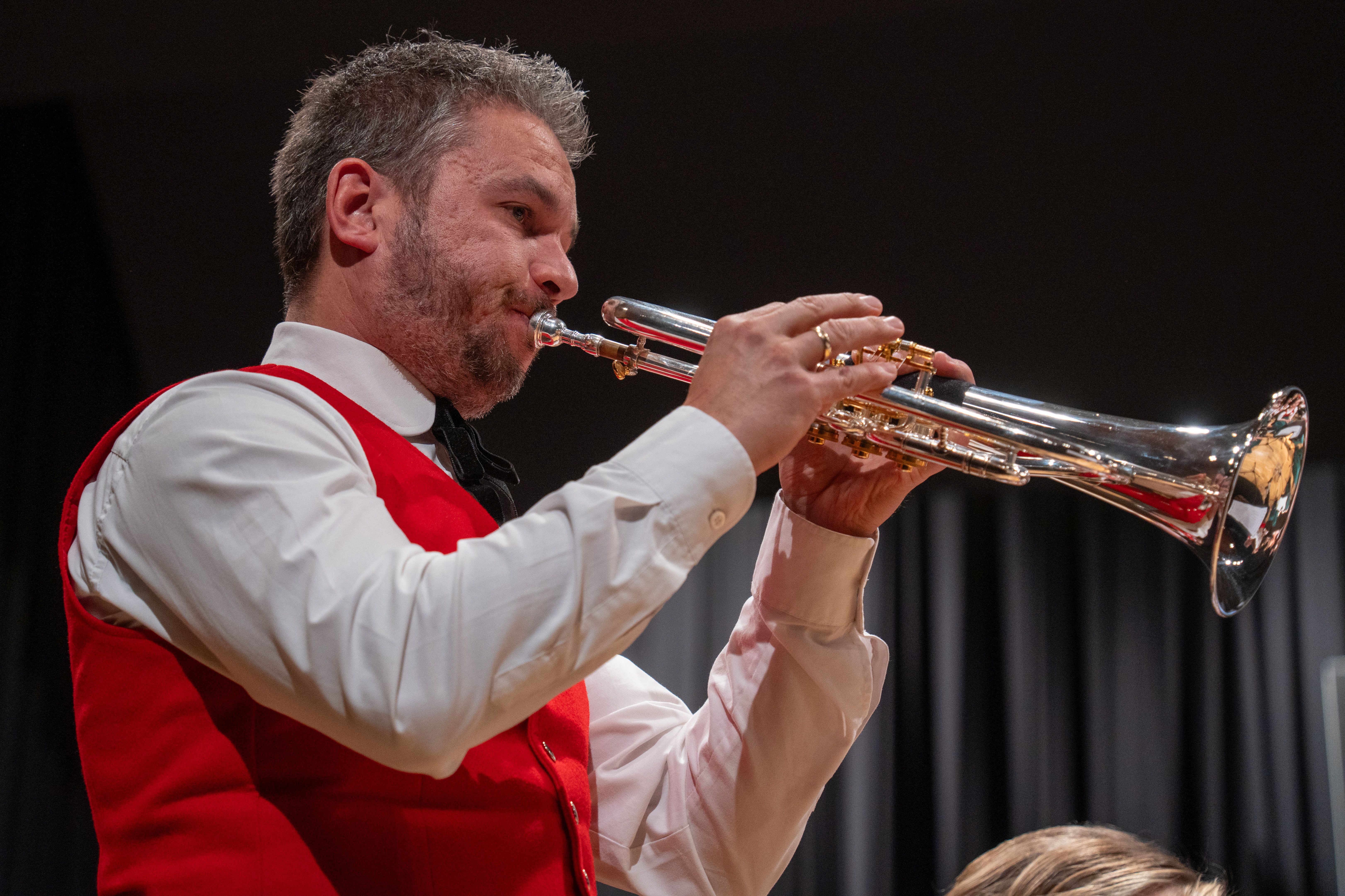 Nach der Pause hieß es dann „Alles Solo“. Mit den Solostücken „Tico-Tico“, „Latin Tuba“, „Zirkus Renz“, „Flügelhorn-Feeling“ und der Zugabe „Für Theresa“ zeigten die Solisten auf den Klarinetten, Xylophon, Flügelhorn und den Tuben ihr Können und ernteten dafür viel Applaus vom Publikum.