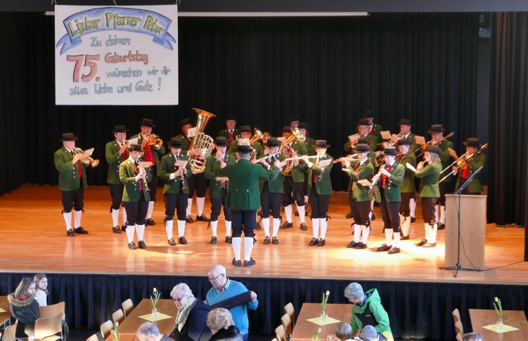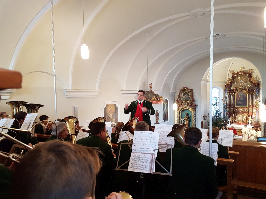 Am Stephanstag, 26. Dezember 2017 umrahmt der Musikverein Übersaxen traditionelle die Hl. Messe in der Pfarrkirche Übersaxen. Bei diesem Gottesdienst gedenken die Musikanten alljährlich der verstorbenen Mitglieder vom Musikverein Übersaxen. Im Anschluss an den Gottesdienst bedankte sich Martin Fritsch im Namen der Musikanten beim Pfarrer Peter Haas für die durch Ihn ermöglichte unvergessliche Romreise und überreichte ihm als kleines Andenken ein Fotobuch von dieser Reise. Auf dem Dorfplatz wurden noch einige Märsche für die anwesenden Zuhörer zum Besten gegeben, bevor sich die Musikanten zum gemütlichen Ausklang des Vereinsjahres 2017 in die Pizerria "da Vinzenco" (GH. Krone) begaben. Diese letzte Ausrückung im Vereinsjahr 2017 war zugleich auch die letzte Ausrückung von Markus Tschohl als Kapellmeister vom Musikverein Übersaxen. Markus wird bei der Jahreshauptversammlung am 6. Jänner 2018 den Dirigentenstab an seinen Nachfolger Heinz Lins übergeben. Eine großen Dank an Markus für seinen Einsatz als Kapellmeister in den letzten 5 Jahren und ein herzliches Willkommen unserem Neuen (und Alten) Kapellmeister Heinz Lins.