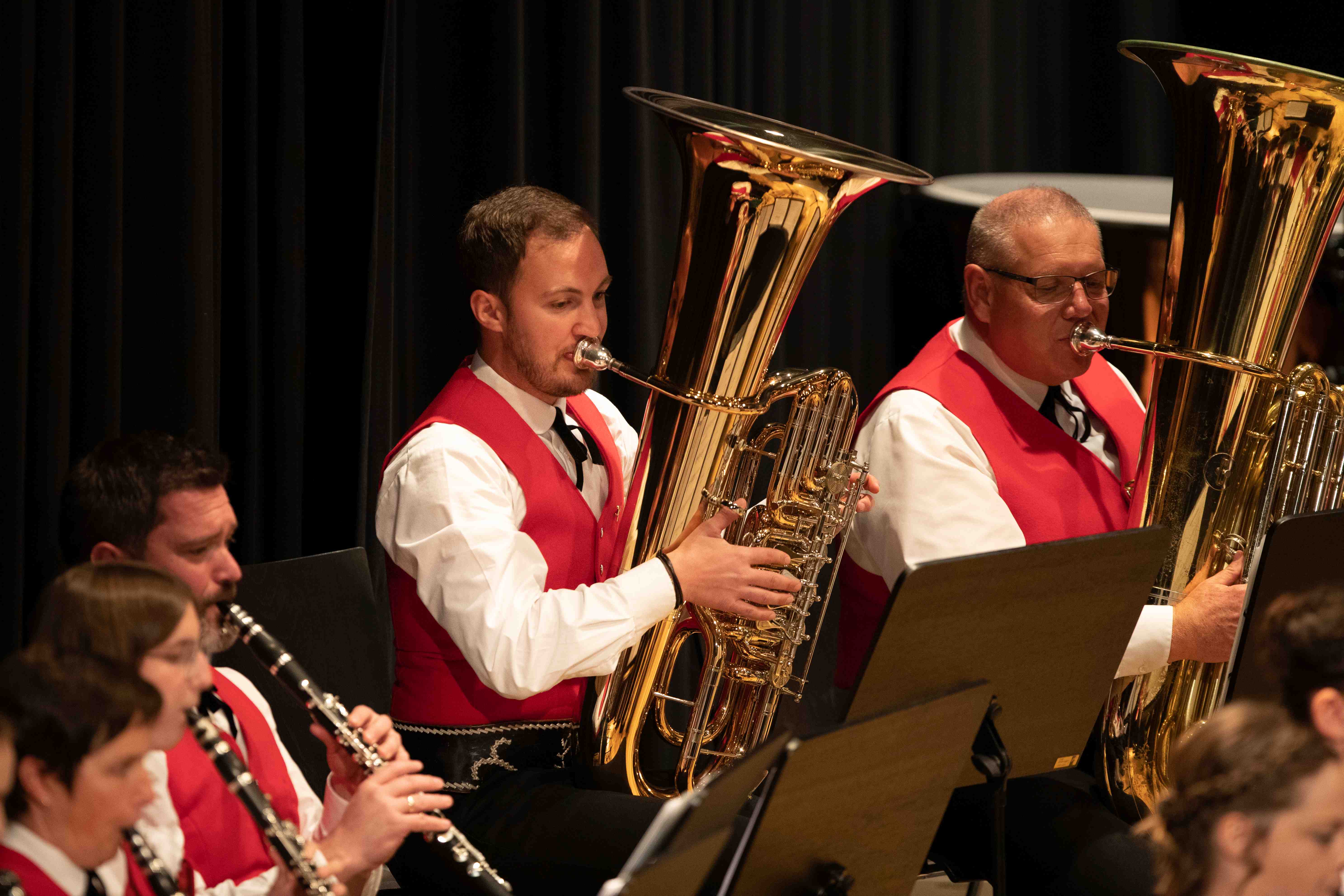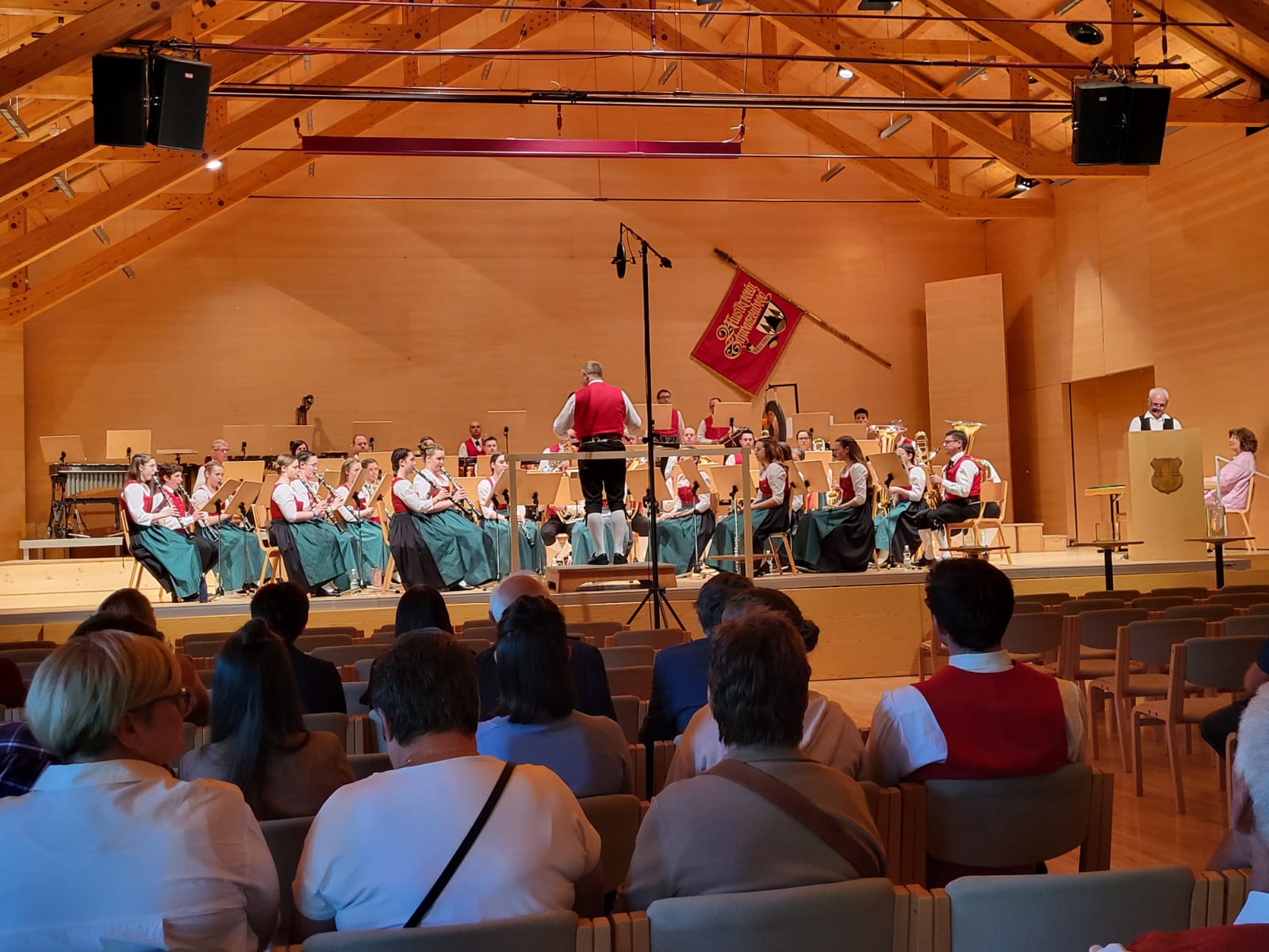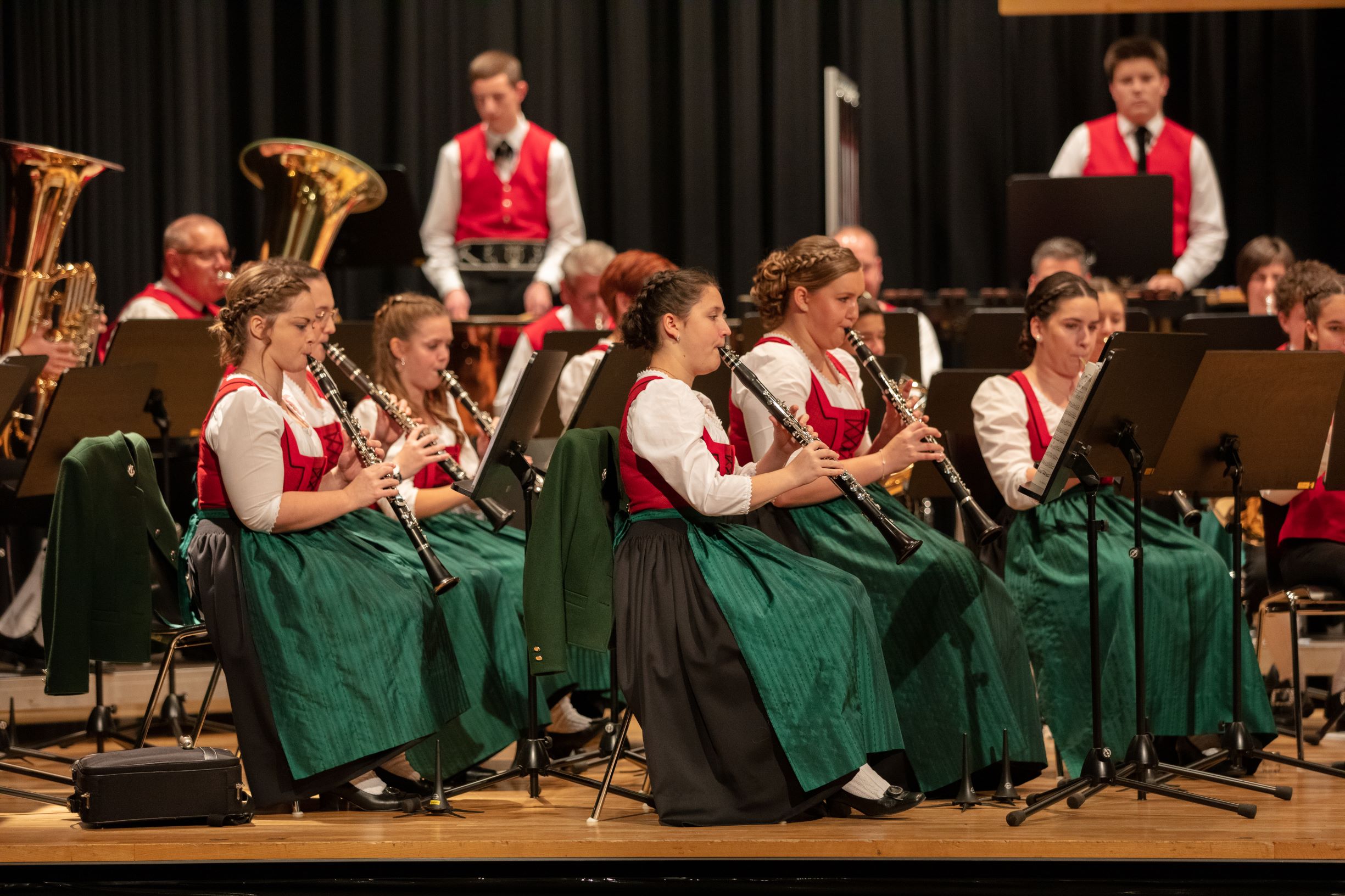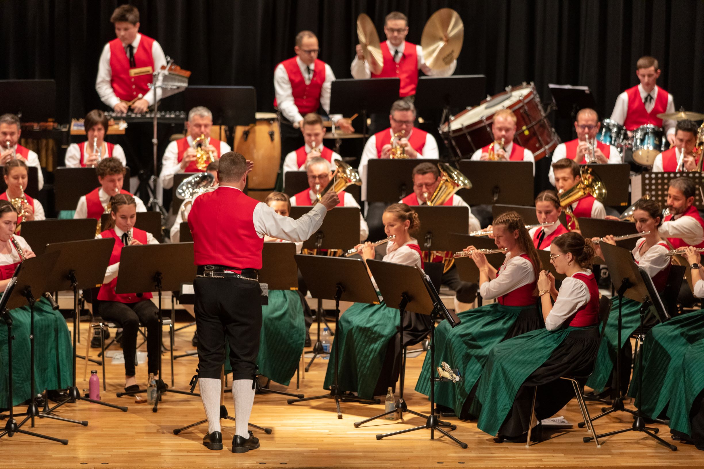 Nach der gekonnten Eröffnung durch den musikalischen Nachwuchs nahmen die Musikantinnen und Musikanten vom Musikverein auf der Bühne vom Dorfsaal Platz. Kapellmeister Heinz Lins hatte mit dem Musikverein wieder ein anspruchsvolles und abwechslungsreiches Konzertprogramm einstudiert.