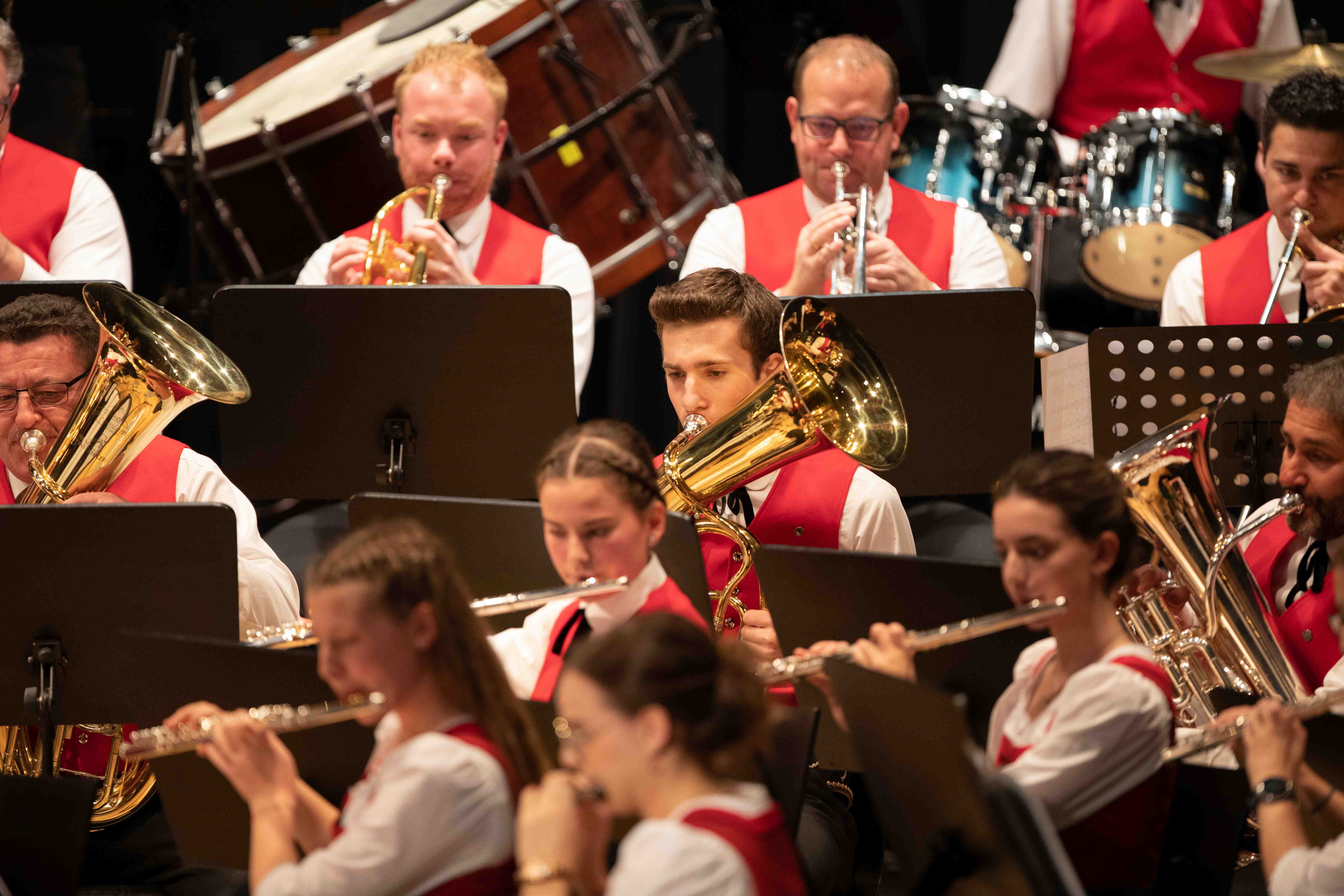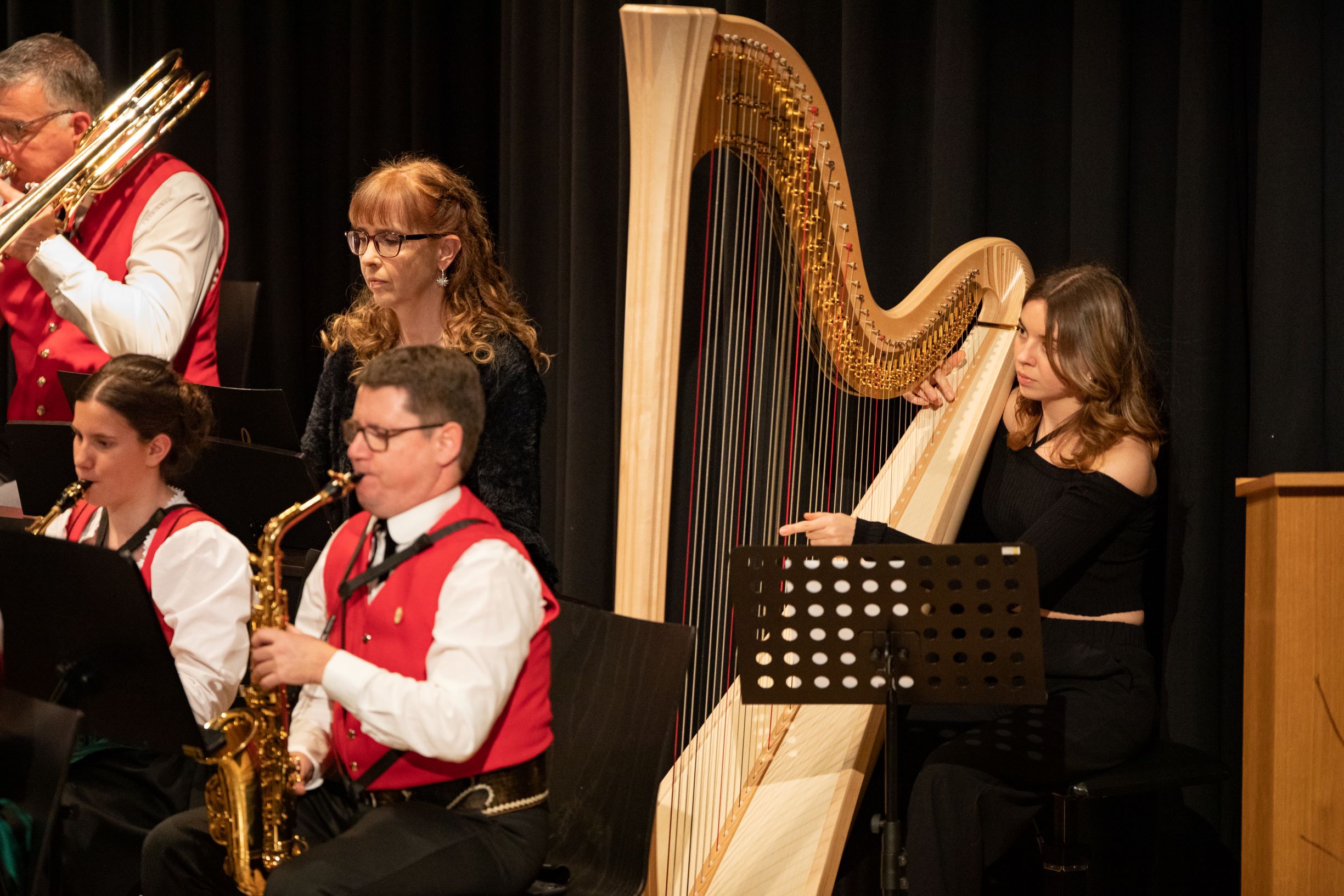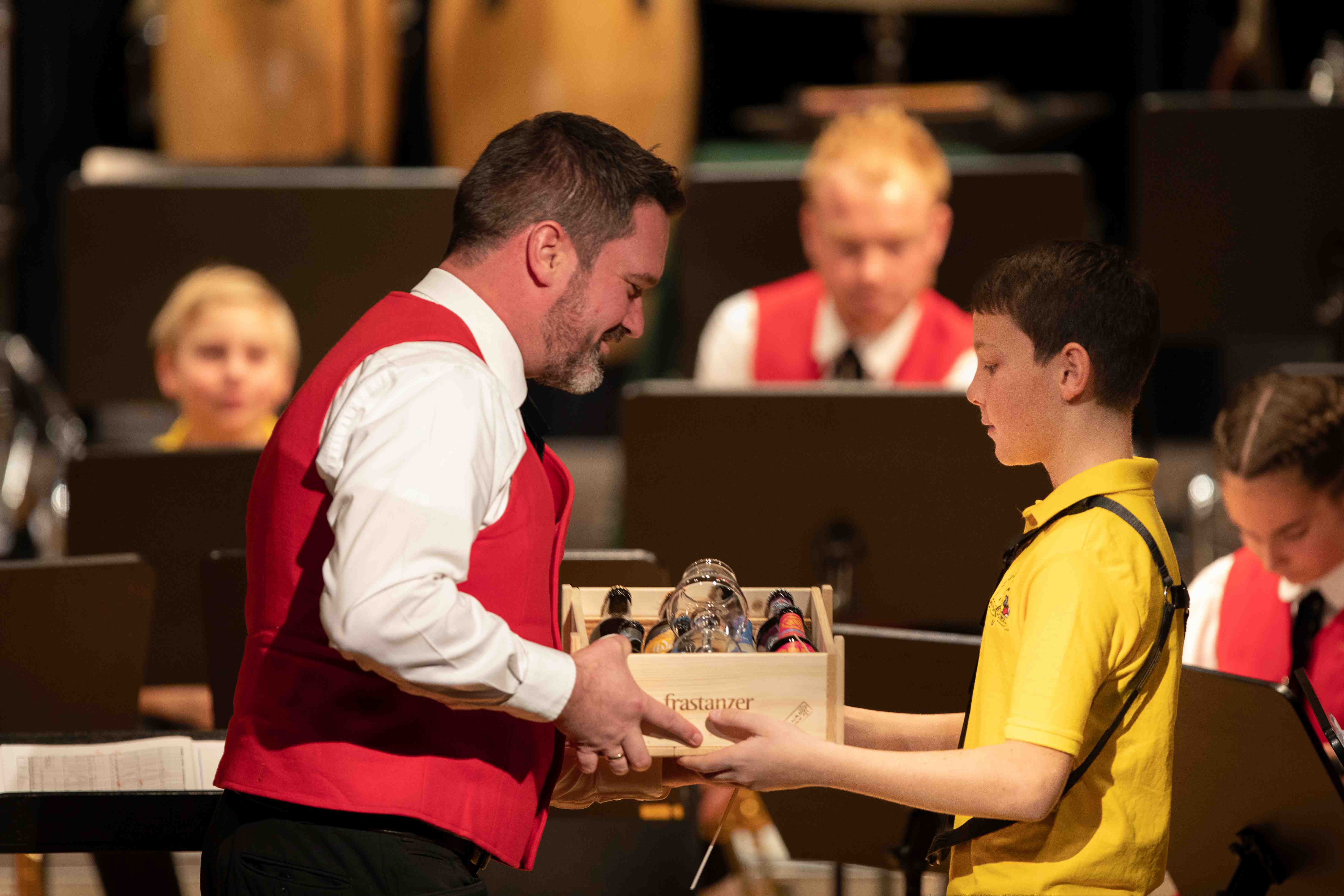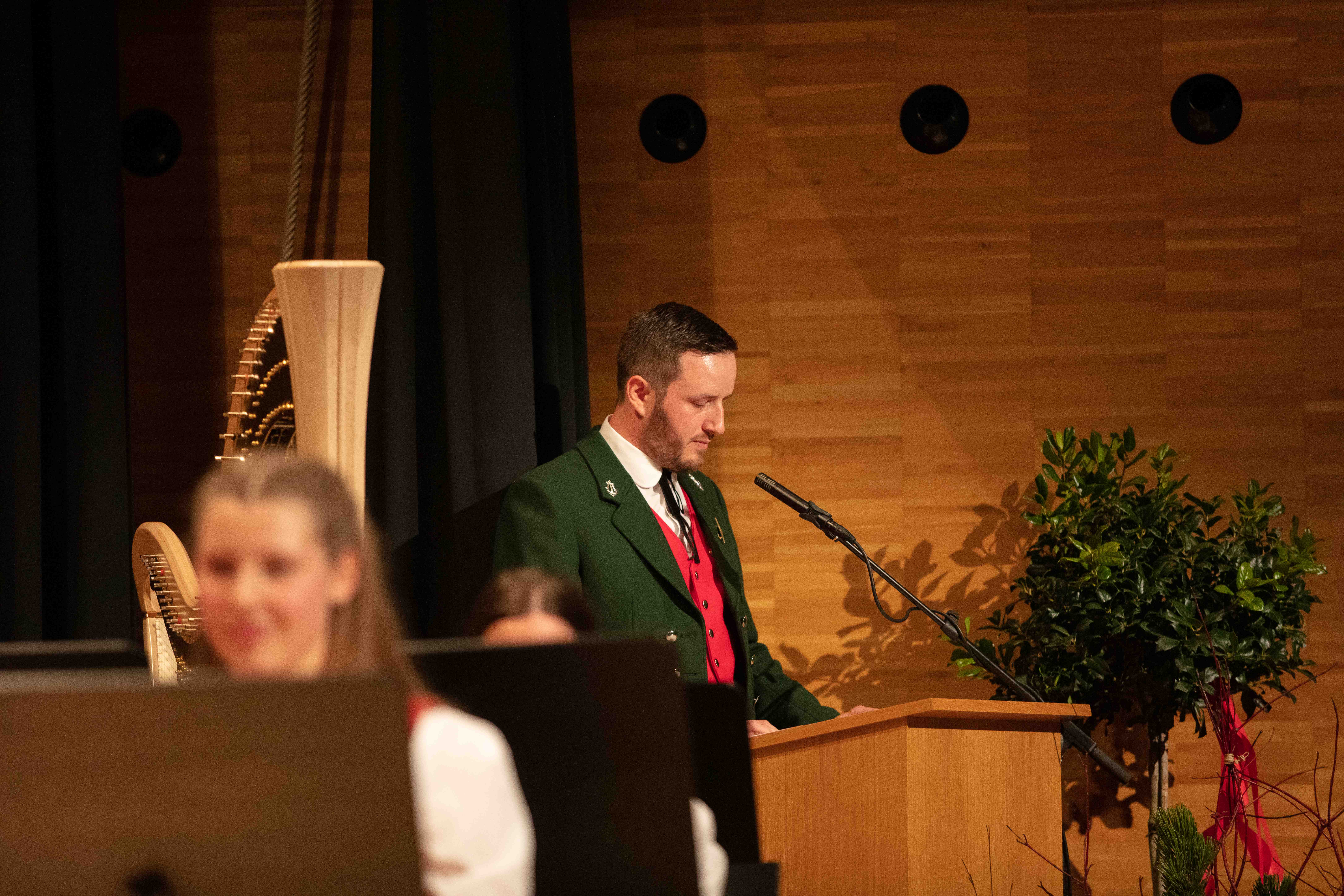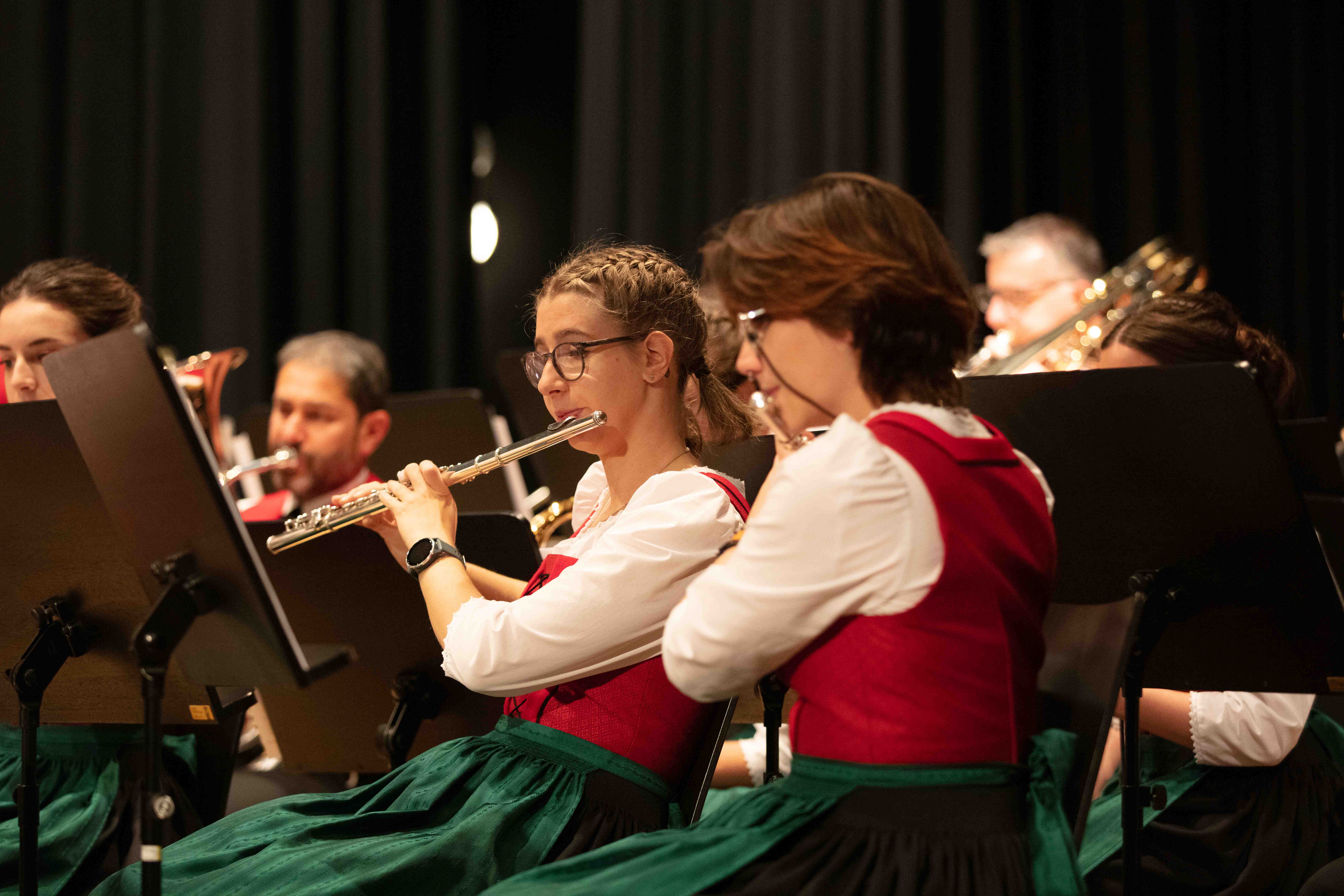 Nach der gekonnten Eröffnung durch den musikalischen Nachwuchs nahmen die Musikantinnen und Musikanten vom Musikverein auf der Bühne vom Dorfsaal Platz. Kapellmeister Heinz Lins hatte mit dem Musikverein wieder ein anspruchsvolles und abwechslungsreiches Konzertprogramm einstudiert.