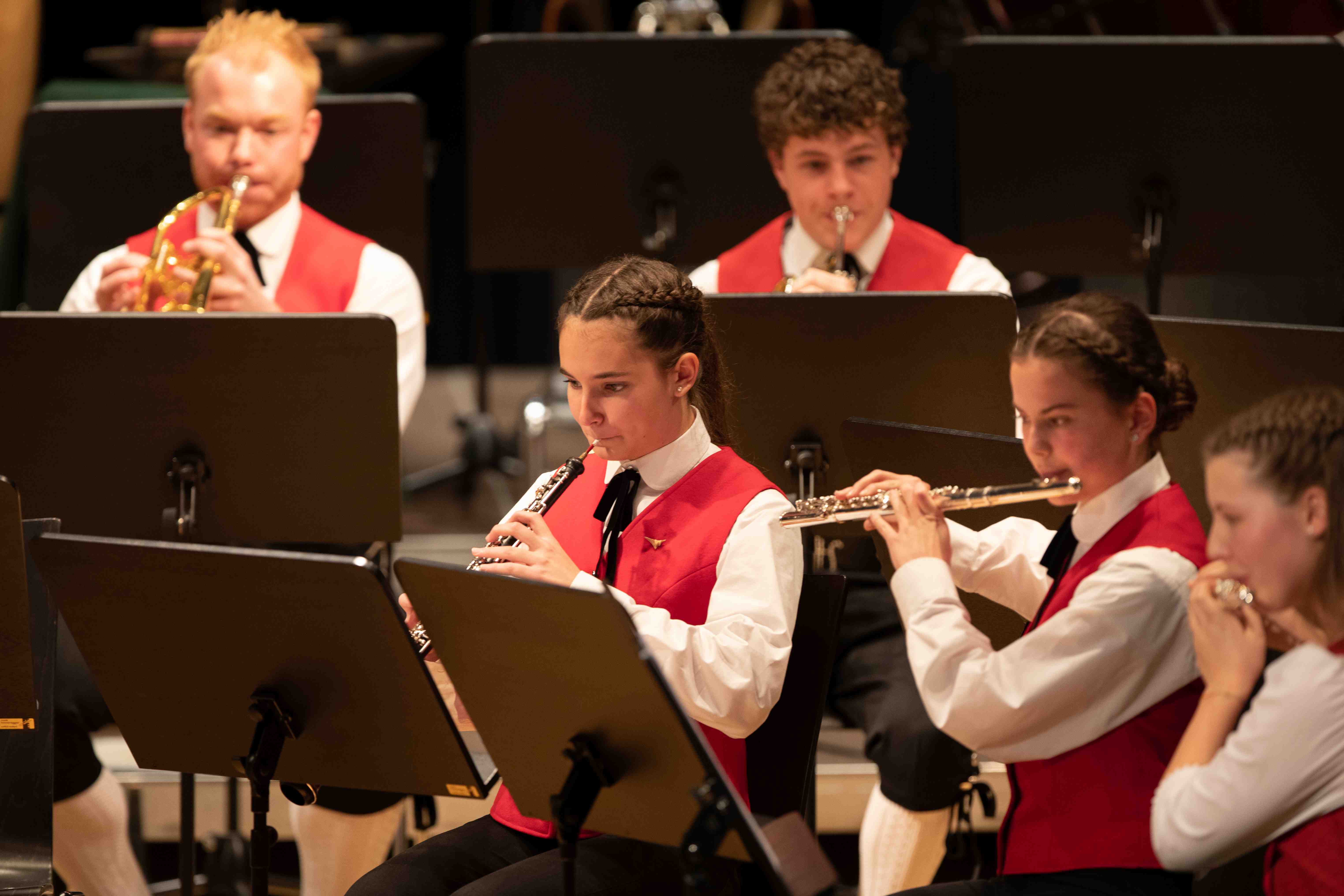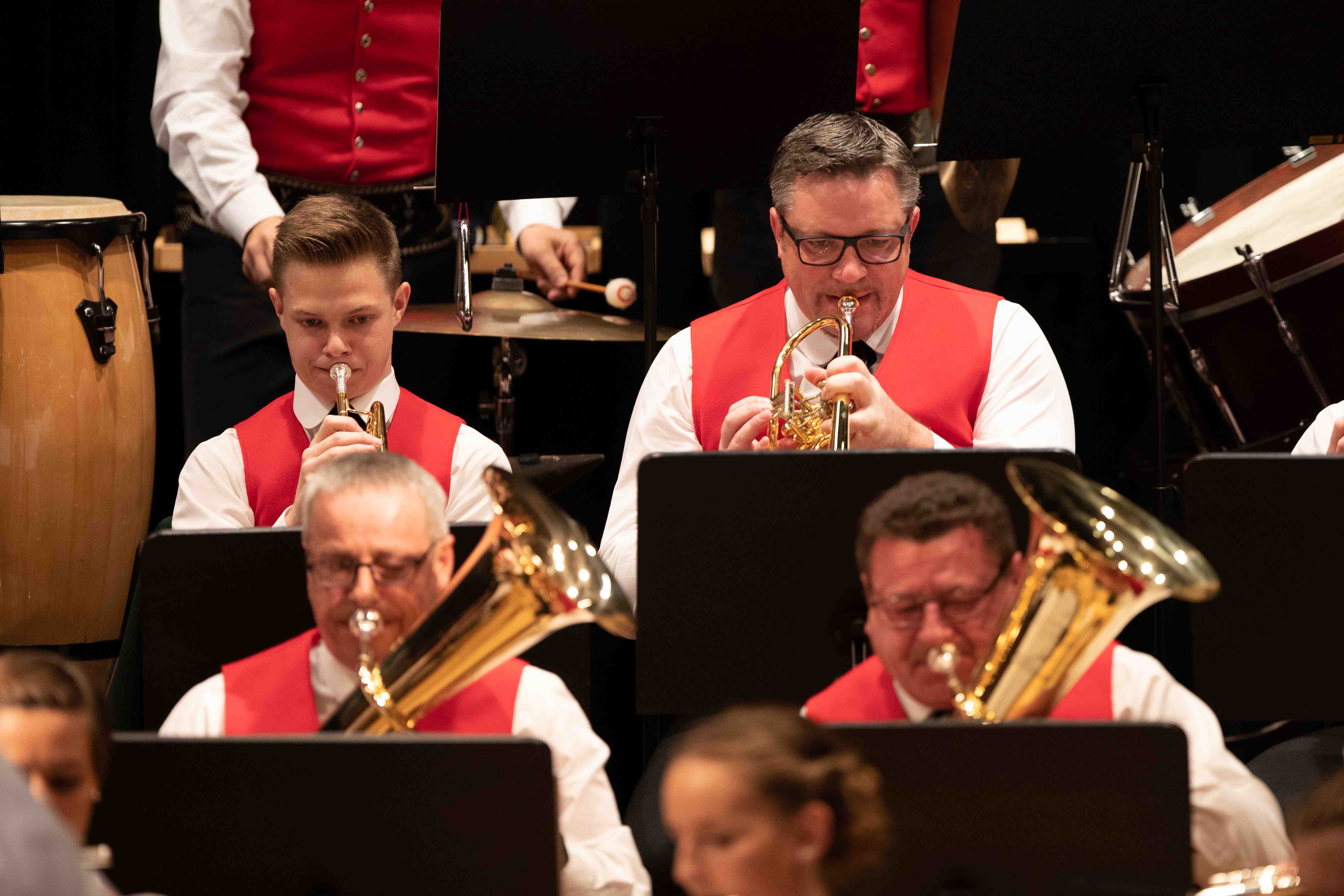 Eröffnet wurde das Konzert mit „A Ship in the Mist“, eine musikalische Erzählung über ein ozeanisches Abenteuer gefolgt von „Caledonia“, bei welchem drei bekannte schottische Volkslieder zu einer rhapsodischen Suite für Blasorchester verarbeitet wurden. Der Höhepunkt des Konzertes war aber ganz klar das Stück „El Camino Real“, ein großartiges und herausforderndes Werk der Blasorchestermusik von Alfred Reed.