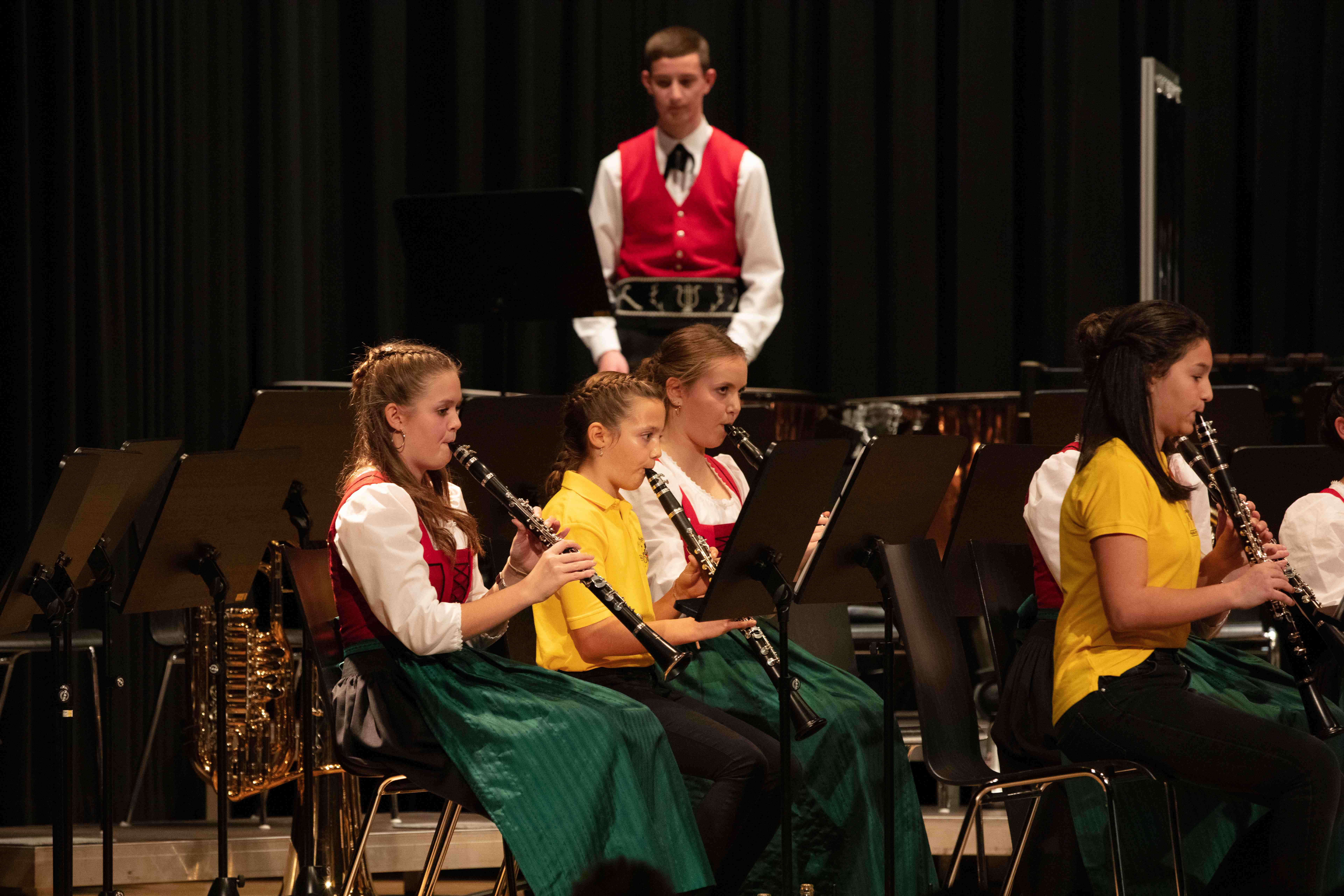 Nach der Pause hieß es dann „Alles Solo“. Mit den Solostücken „Tico-Tico“, „Latin Tuba“, „Zirkus Renz“, „Flügelhorn-Feeling“ und der Zugabe „Für Theresa“ zeigten die Solisten auf den Klarinetten, Xylophon, Flügelhorn und den Tuben ihr Können und ernteten dafür viel Applaus vom Publikum.