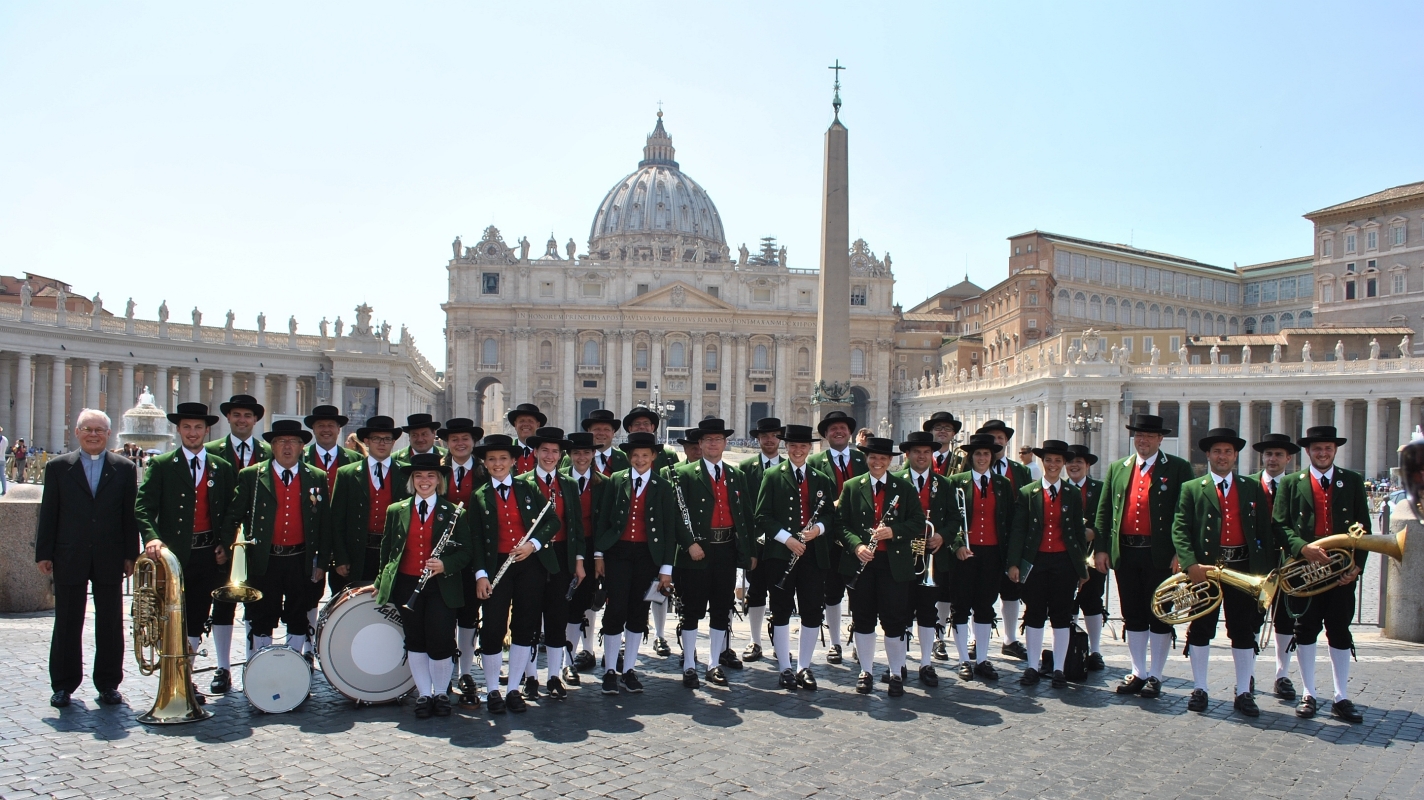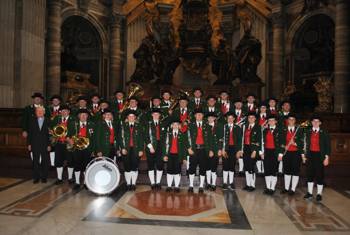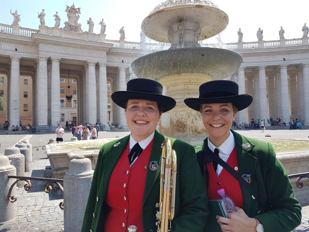 Am Freitag starteten wir am Morgen eine Stadtführung, welche wir zuerst im Bus und anschließend zu Fuß machten. Die bekanntesten Sehenswürdigkeiten wie das Colosseum, die Spanische Treppe, den Trevi-Brunnen, die Engelsburg und viele mehr wurden besichtigt. Am Nachmittag nach einer kurzen Pause machten wir uns mit dem Bus auf den Weg zum Petersdom, in welchem wir bei einer Messgestaltung mitwirken durften. Mit dabei waren auch die Musikkapelle St. Anton am Arlberg, Marktmusikkapelle Brixlegg und die Trachtenkapelle Neumarkt am Wallersee. Für uns Musikanten war dies ein sehr außergewöhnlicher Auftritt an den wir uns sicher noch lange gerne erinnern werden.