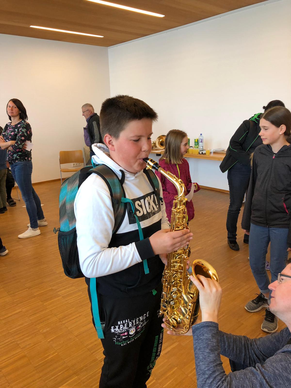 Bei der diesjährigen Instrumentenvorstellung am 6.4.2019 im Probelokal vom Musikverein Übersaxen konnten die anwesenden Kinder zu Beginn einiges über die unterschiedlichsten Instrumente und den Ausbildungsweg im Musikverein erfahren. Die Instrumente wurden dabei von Musikanten und und Jungmusikanten vom Musikverein musikalischen vorgestellt.