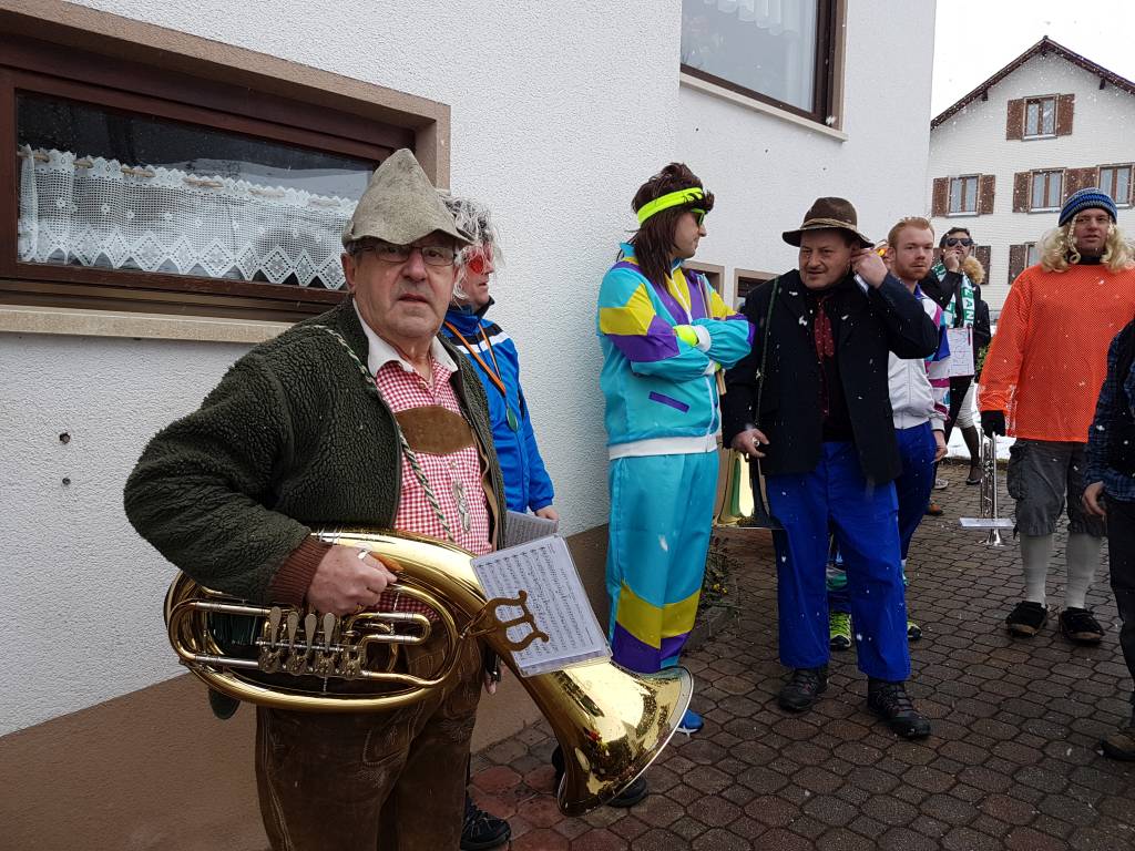 Am 11. Februar 2018, Faschingssonntag, fand in Übersaxen der alle 2 Jahre von der Faschingsgilde Übersaxen veranstaltete "Übersaxner Faschingsumzug" statt. Der Musikverein wirkte bei diesem Umzug und beim anschließenden Faschingstreiben im Dorfsaal musikalisch mit. Für die Verkleidung wurde das Motto "s'mindscht was findsch't" vom diesjährigen Musikball gewählt.