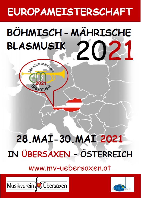 Wir freuen uns verkünden zu dürfen, dass die "Europameisterschaft der böhmisch-mährischen Blasmusik im Jahre 2021 in Übersaxen (Österreich, Vorarlberg) stattfinden wird. Mit dem Zuschlag von der CISM (Internationaler Musikbund) Ende 2018 haben für uns die Vorbereitungen begonnen. Wir werden Euch hier auf dieser Website natürlich fortlaufend mit Infos über diese Veranstaltung versorgen.